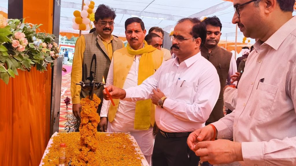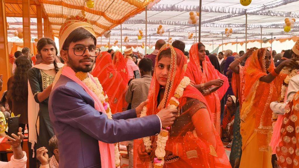 गाजीपुर। मुख्यमंत्री सामूहिक विवाह योजनान्तर्गत समाज कल्याण विभाग द्वारा संचालित मुख्यमंत्री सामूहिक विवाह कार्यक्रम का आयोजन आर टी आई मैदान (नवीन स्टेडियम) में मंगलवार को सम्पन्न हुआ। शादी समारोह का शुभारंभ मुख्य विकास अधिकारी संतोष कुमार वैश्य द्वारा दीप प्रज्ज्वलित कर किया गया। सामूहिक विवाह योजना में कुल 378 जोड़ो का सामूहिक विवाह पूरे विधि विधान के साथ सम्पन्न हुआ। सामूहिक विवाह के अवसर पर उपस्थित समस्त जनप्रतिनिधियों एवं अधिकारियों ने नव विवाहित वर-वधुओं को उनके वैवाहिक जीवन की मंगल कामना करते हुए शुभकामना दी। सामूहिक विवाह में नव दाम्पत्य को विवाह प्रमाण पत्र एवं पौध रोपण हेतु आम वृक्ष का पौधा उनके हाथो में दिया गया। विवाह कार्यक्रम मे मंच से ही मंत्री ओमप्रकाश राजभर के प्रतिनिधि, जिला विकास अधिकारी, परियोजना निदेशक ने संयुक्त रूप से बटन दबाकर 35 हजार रूपये की धनराशि वधुओ के खाते मे हस्तान्तरित किया।