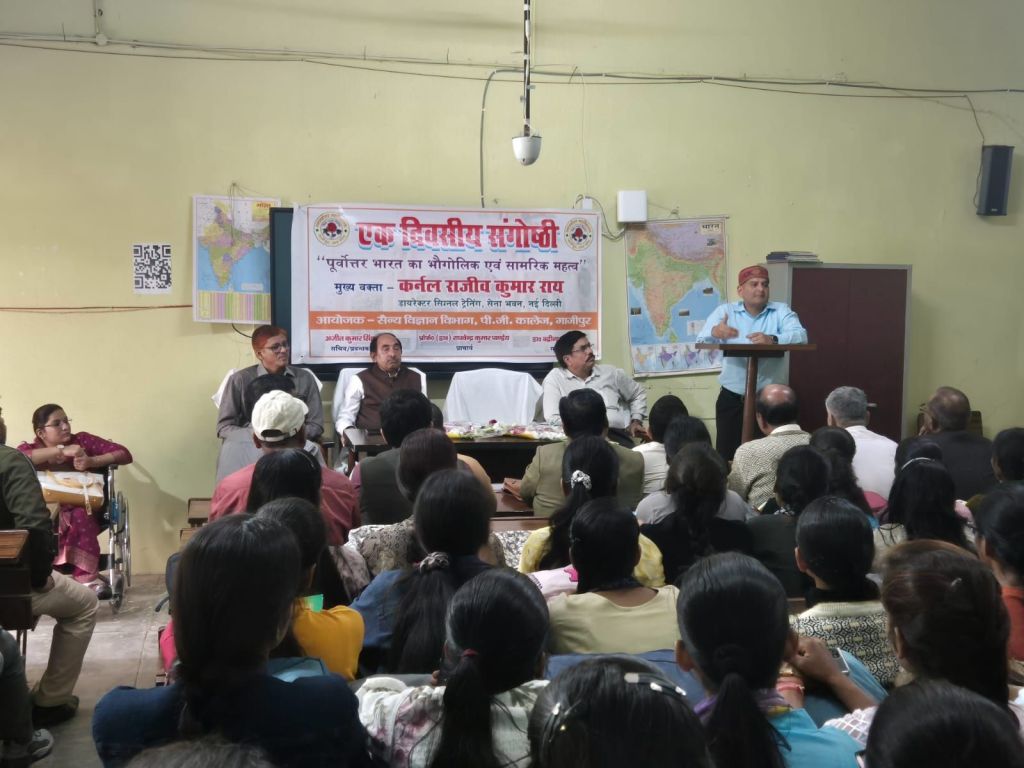 गाजीपुर। स्नातकोत्तर महाविद्यालय में शुक्रवार को सैन्य विज्ञान विभाग द्वारा एकल व्यख्यान का आयोजन किया गया। व्याख्यान का विषय “पूर्वोत्तर भारत का भौगोलिक एवं सामरिक महत्व” था। संगोष्ठी में मुख्य वक्ता के रूप में कर्नल राजीव कुमार राय, डायरेक्टर सिग्नल ट्रेनिंग, सेना भवन, नई दिल्ली, उपस्थित रहें। इस आयोजन का मुख्य उद्देश्य पूर्वोत्तर भारत के भौगोलिक स्थिति और सामरिक महत्व पर गहन विचार-विमर्श करना था।