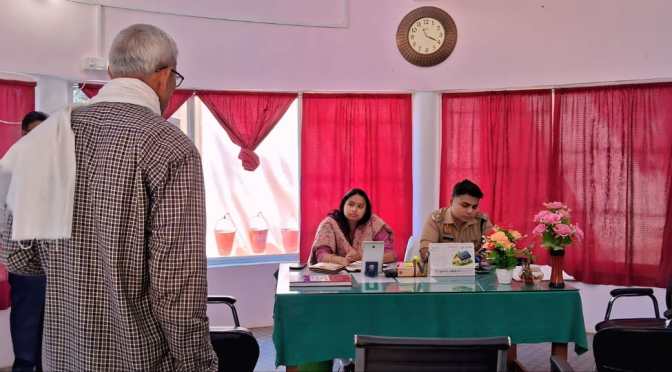 गाजीपुर ।माह के द्वितीय शनिवार को थाना दिवस जिलाधिकारी आर्यका अखौरी की अध्यक्षता में थाना करण्डा में सम्पन्न हुआ। जिलाधिकारी ने थाने मे उपस्थित फरियादियों की फरियाद सुनी साथ ही शिकायतो को जल्द से जल्द निस्तारण के लिए प्रशासनिक एवं पुलिस अधिकारियों को निर्देश दिया। थाना करण्डा मे 03 फरियादियों ने अपनी-अपनी शिकायतो को लिखित रूप में दिया जिसमें निस्तारण शून्य रहा। जिलाधिकारी ने सभी विभागाध्यक्षाो को निर्देशित किया है कि आई0जी0आर0एस0 पोर्टल पर जितने भी आवेदन प्राप्त होते है या लम्बित हैं, उन्हे पुलिस विभाग से समन्वय स्थापित कर फिल्ड रजिस्टर पर सभी आवदनों को नोट करके तत्काल निस्तारण किया जाए।उन्होने निर्देशित किया कि जिस गांव की शिकायत आती है तो अधिकारी वहां मौके पर जाकर गांव के संबंधित लेखपाल एवं पुलिस विभाग की टीम के साथ मिलकर निस्तारण करेंगे। इसमें किसी प्रकार की लापरवाही एवं शिथिलता क्षम्य नही होगी। इस मौके पर थाना प्रभारी करण्डा, लेखपाल एंव अन्य पुलिस विभाग से संबंधित अधिकारी कर्मचारी उपस्थित रहे।