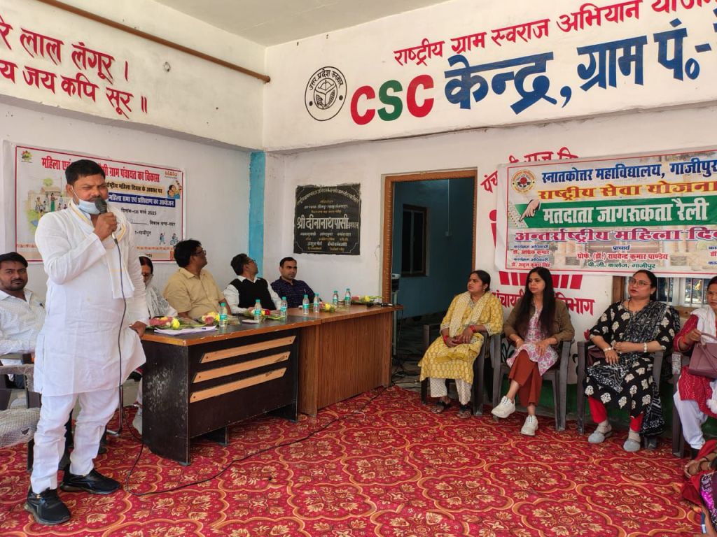 गाजीपुर। शनिवार को स्नातकोत्तर महाविद्यालय में राष्ट्रीय सेवा योजना के छठे दिन अंतर्राष्ट्रीय महिला दिवस के उपलक्ष्य में प्राचार्य प्रोफ. राघवेंद्र कुमार पांडेय की अध्यक्षता एवं संरक्षण में महाविद्यालय से हेतिमपुर तक एक रैली निकाली गई। इस रैली के दौरान स्वयंसेवक एवं सेविकाओं ने ” सम्मान प्रतिष्ठा और अधिकार, नारी सशक्तिकरण के हैं आधार; नारी है तो परिवार है, सुंदर जीवन का आधार है” आदि नारे लगाकर लोगों को समाज से लैंगिक भेदभाव खत्म करने एवं महिलाओं की सुरक्षा एवं सम्मान सुनिश्चित करने को लेकर जागरूक किया। प्रोफेसर प्रतिमा सिंह ने अंतर्राष्ट्रीय महिला दिवस की शुभकामनाएं देते हुए कहा कि नारियों की जितनी ज्यादा उन्नति होगी हमारा राष्ट्र उतना ही सशक्त एवं समृद्ध होगा।