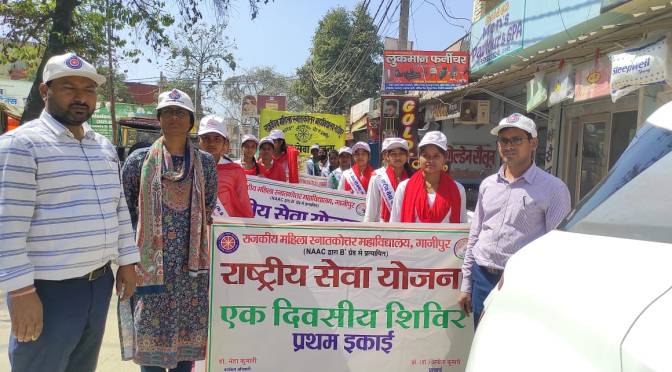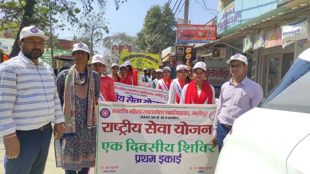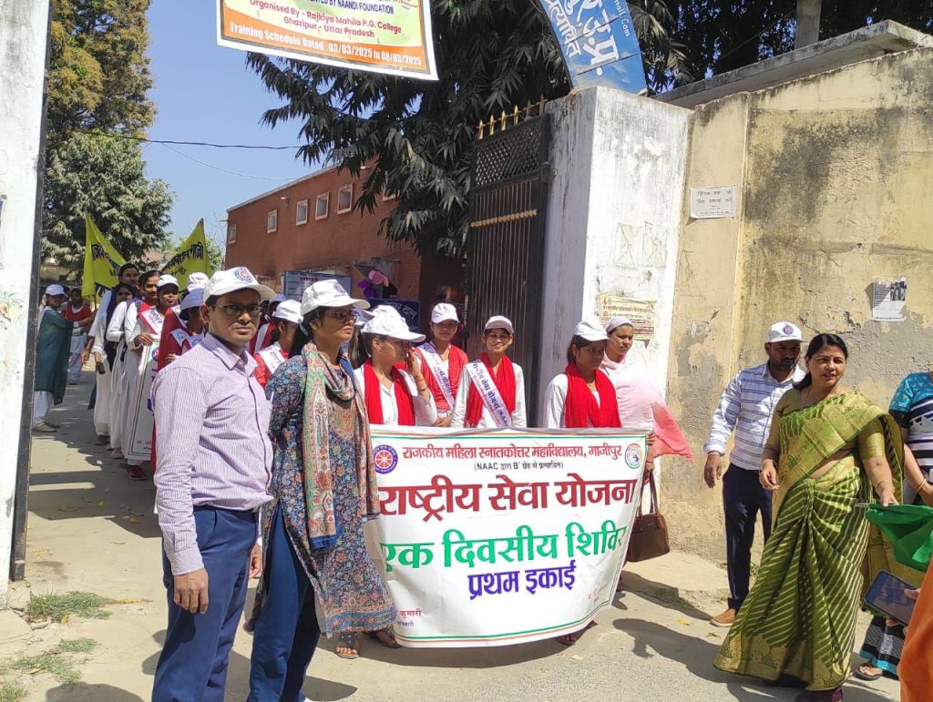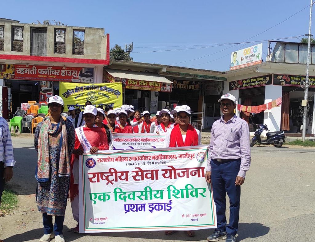गाजीपुर। शनिवार को राजकीय महिला स्नातकोत्तर महाविद्यालय में राष्ट्रीय सेवा योजना का तृतीय एक दिवसीय शिविर आयोजित किया गया। अंतर्राष्ट्रीय महिला दिवस के उपलक्ष्य में प्राचार्य प्रो. अनिता कुमारी की अध्यक्षता एवं संरक्षण में महाविद्यालय से महुआ बाग मिश्र बाजार तक एक रैली निकाली गई। रैली के दौरान स्वयंसेवी छात्राओं ने ” सम्मान प्रतिष्ठा और अधिकार, नारी सशक्तिकरण के हैं आधार; नारी है तो परिवार है, सुंदर जीवन का आधार है” आदि नारे लगाकर लोगों को समाज से लैंगिक भेदभाव खत्म करने एवं महिलाओं की सुरक्षा एवं सम्मान सुनिश्चित करने को लेकर जागरूक किया। रैली उपरांत स्वयंसेवी छात्राएं महाविद्यालय लौटकर सूक्ष्म जलपान ग्रहण किया।