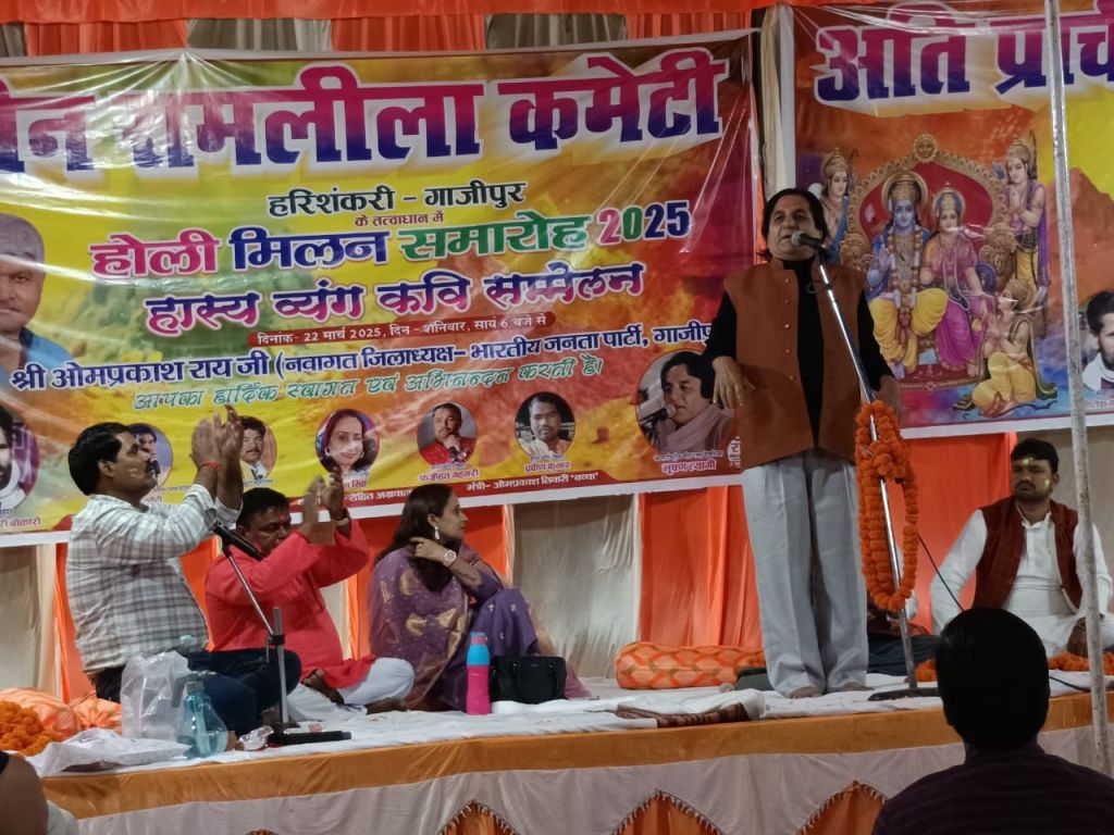 गाज़ीपुर। शनिवार को अति प्राचीन रामलीला कमेटी, हरिशंकरी, गाज़ीपुर के तत्वावधान में हरिशंकरी स्थित प्राचीन राम चबूतरे पर होली मिलन एवं काव्य संध्या का भव्य आयोजन किया गया। इस कार्यक्रम में कवियों और अतिथियों का स्वागत कमेटी और गणमान्य नागरिकों द्वारा माल्यार्पण कर अबीर-गुलाल लगाकर और पुष्प पंखुड़ियों से होली खेल कर किया गया।कार्यक्रम में नगर व आसपास के गणमान्य नागरिकों की उपस्थिति रही।