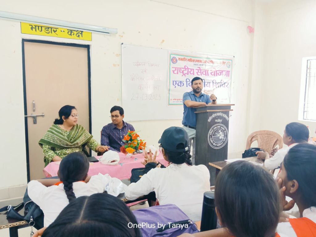तत्पश्चात महाविद्यालय लौटकर स्वयं सेवी छात्राओं ने जलपान किया। शिविर के दूसरे सत्र में प्राचार्य की अध्यक्षता में “व्यक्तित्व विकास एवं कैरियर गाइडेंस” से संबंधित एक कार्यशाला का आयोजन किया गया जिसमें स्वयंसेवी छात्राओं को व्यक्तित्व विकास एवं कार्य क्षेत्र में सफल होने संबंधी आवश्यक बातें बताई गई। वरिष्ठ कार्यक्रम अधिकारी डॉ रामनाथ केसरवानी ने विविध क्षेत्रों में करियर की संभावनाओं पर चर्चा की साथ ही लक्ष्य प्राप्ति के लिए, स्पष्ट लक्ष्य निर्धारित कर योजना बनाने एवं सकारात्मक सोच के साथ निरंतर प्रयास करने पर जोर दिया ।