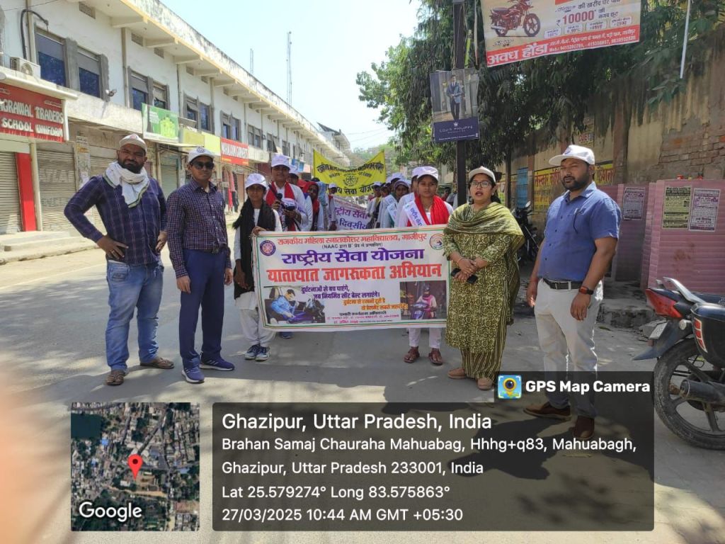 गाजीपुर। गुरुवार को राजकीय महिला स्नातकोत्तर महाविद्यालय में राष्ट्रीय सेवा योजना का चतुर्थ एक दिवसीय शिविर आयोजित किया गया जिसमें यातायात जागरूकता अभियान से संबंधित एक रैली निकाली गई। रैली को प्राचार्य प्रोफेसर अनिता कुमारी द्वारा हरी झंडी दिखाकर रवाना किया गया । महाविद्यालय से महुआ बाग मिश्रा बाजार कोतवाली तक रैली के दौरान स्वयंसेवी छात्राओं ने सड़क सुरक्षा संबंधी तमाम नारे – दुर्घटना पर लगेगा ताला जब पहनोगे सुरक्षा की माला, सड़क सुरक्षा की यही पुकार बिना हेलमेट सब बेकार – आदि लगाकर लोगों को यातायात नियमों का पालन करने एवं शराब पीकर गाड़ी न चलाने का संदेश दिया।