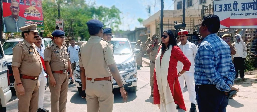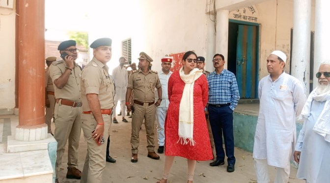 गाजीपुर।अलविदा जुमा, ईद, एवं नवरात्री त्यौहार को शौर्हाद पूर्वक एवं शान्तिपूर्ण ढंग से मनाए जाने,शांति व्यवस्था बनाये रखने के उद्देय से जिलाधिकारी आर्यका अखौरी एवं पुलिस अधीक्षक डा. ईरज राजा ने पुलिस बल के साथ शहर के विभिन्न रास्ते से होते हुए विशेश्वरगंज, रौजा, टेडवा, रजदेपुर, एम0एच0इण्टर कालेज, बरबरहना, तुलसी का पुल, खुदाईपुरा, नखाश, सन बाजार,चीतनाथ घाट, टाउन हाल, प्रकाश टाकीज, गांधी पार्क, लाल दरवाजा, परसपुरा, कोतवाली तक पैदल गस्त किया। जिलाधिकारी ने आमजनमानस से शान्तिपूर्ण ढंग से सभी त्योहारो को मनाने के लिए अपील की। रूट मार्च में उपजिलाधिकारी सदर मनोज पाठक, क्षेत्राधिकारी शहर, भारी संख्या में पुलिस बल के कर्मचारी एवं अधिकारी उपस्थित रहे।