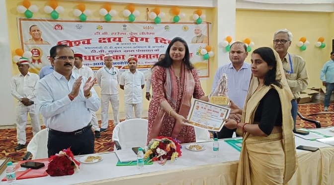 विश्व टीबी दिवस के अवसर पर जिलाधिकारी द्वारा टीबी मुक्त ग्राम पंचायत के प्रधानों को किया गया सम्मानित