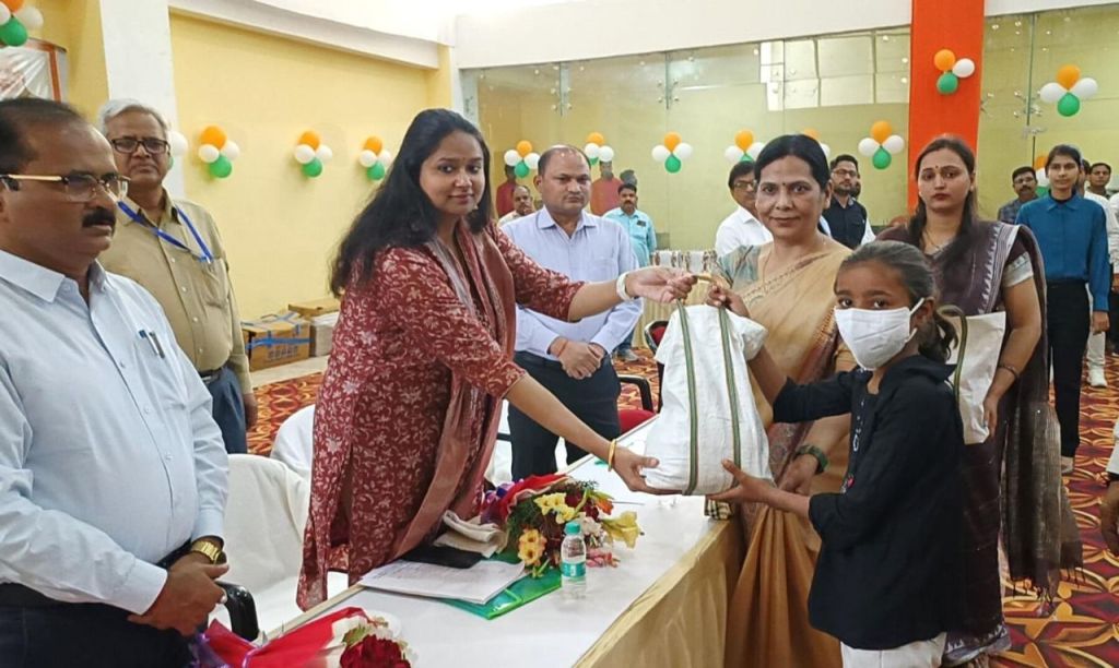जिलाधिकारी आर्यका अखौरी ने 104 टीबी मुक्त ग्राम पंचायत के ग्राम प्रधान के दिया प्रमाण पत्र और गांधी जी कि प्रतिमा
