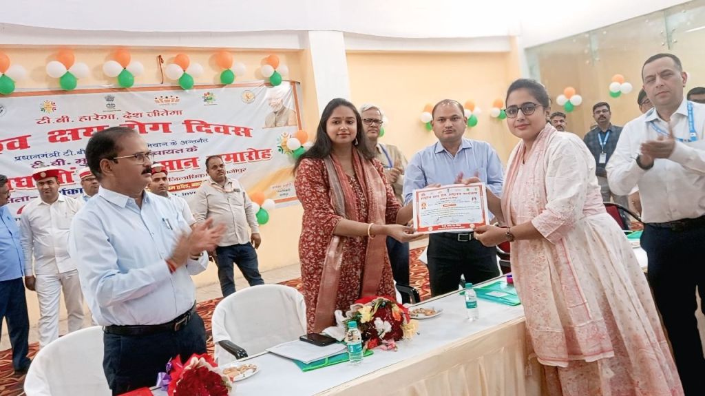 जिलाधिकारी द्वारा 100 दिवसीय सघन टीबी अभियान एवं टीबी मुक्त ग्राम पंचायत तथा प्रधानमंत्री टीबी मुक्त भारत अभियान में उत्कृष्ट कार्य करने वाले कर्मचारियों को प्रशस्ति पत्र दिया गया