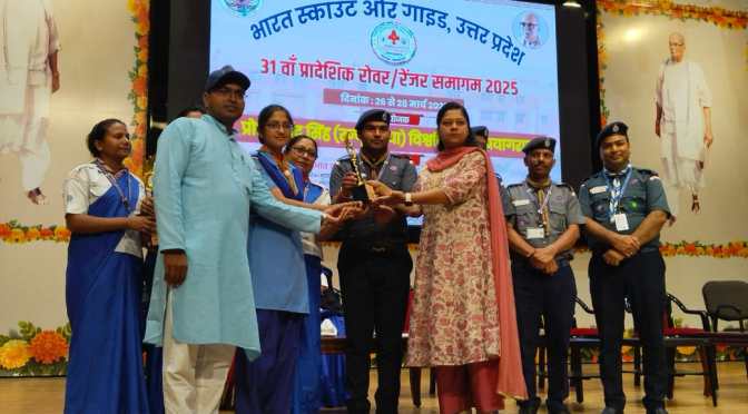 गाजीपुर। राजकीय महिला पीजी कॉलेज की प्रज्ञा रेंजर टीम ने 26 मार्च से 28 मार्च 2025 तक आयोजित त्रिदिवसीय 31 वे प्रादेशिक रोवर्स रेंजर्स समागम में प्रोफेसर राजेंद्र सिंह (रज्जू भैया) विश्वविद्यालय, नैनी प्रयागराज में पूर्वांचल विश्वविद्यालय, जौनपुर का प्रतिनिधित्व करते हुए प्रतिभाग किया और विभिन्न प्रतियोगिताओं में प्राप्त अंकों के आधार पर 2025 की रेंजर्स वर्ग में उपविजेता बनी।