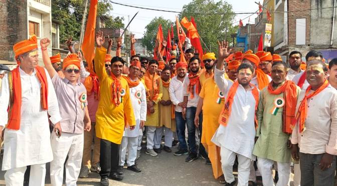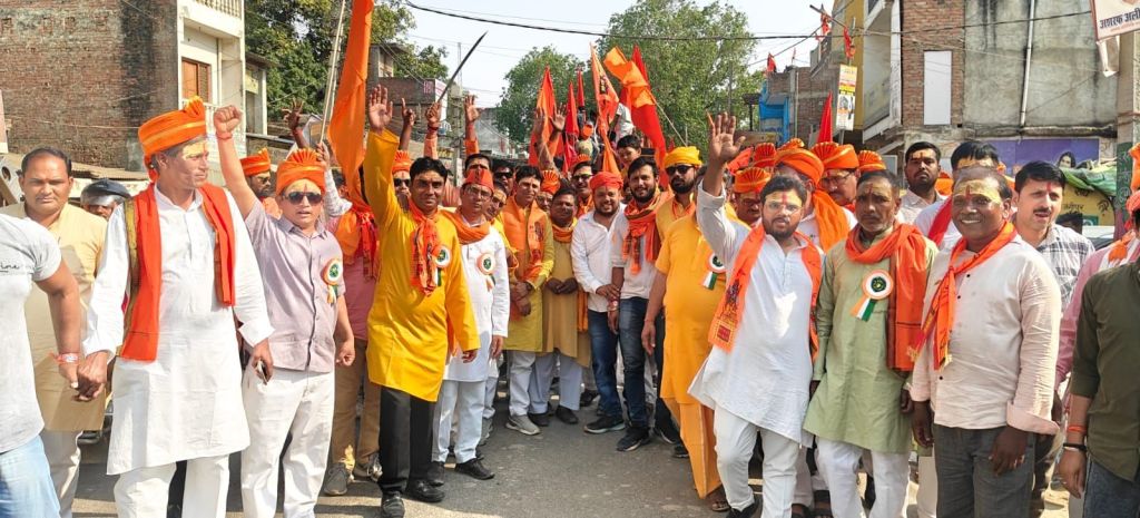शोभायात्रा प्राथमिक विद्यालय जंगीपुर से प्रारंभ होकर नगर के लावा मोड़ यादव मोड़ गांधी आश्रम मोड़ इस्लामिया स्कूल नगर पंचायत कार्यालय कृषि उत्पादन मंडी समिति होते हुए राम जानकी पोखरा तक निकाली गई।