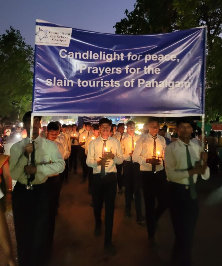 गाजीपुर। शुक्रवार को माउंट लिटेरा ज़ी स्कूल ने हाल ही में जम्मू-कश्मीर के पहलगाम में हुए आतंकी हमले में मारे गए मासूम पर्यटकों की दुखद मृत्यु पर गहरा शोक व्यक्त करते हुए एक कैंडल मार्च का आयोजन किया।