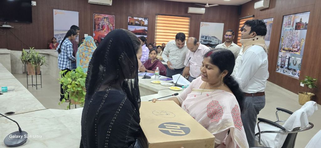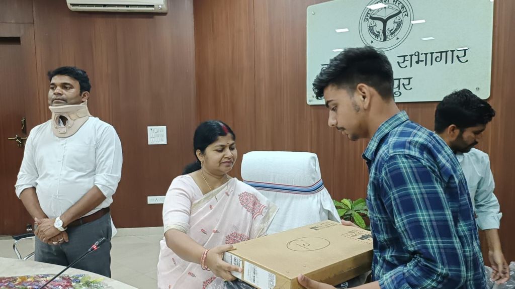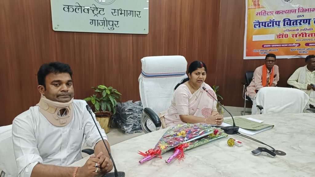 गाजीपुर। महिला कल्याण विभाग द्वारा संचालित योजना उ0प्र0 मुख्यमंत्री बाल सेवायोजना अंतर्गत कोविड-19 महामारी से मृतक अभिभावकों के बच्चों को 18 वर्ष की आयु तक राज्य सरकार द्वारा प्रतिमाह 4000/-रू0 की आर्थिक सहायता प्रदान की जाती है। योजना के तहत लाभ प्राप्त कर रहे कक्षा 09 या इसके उपर के कक्षा में अथवा व्यवसायिक शिक्षा प्राप्त कर रहे बच्चों को टैबलेट/लैपटाप की सुविधा एक बार उपलब्ध कराया जाता है। जनपद में योजना के तहत वर्तमान में 53 बच्चे लैपटॉप वितरण हेतु चिन्हित हुए थे। जिसके क्रम में रायफल क्ल्ब (कलेक्ट्रेट सभागार) में सांसद राज्यसभा डा. संगीता बलवंत की गरिमामयी उपस्थिति में 42 उपस्थित लाभार्थी बच्चों को लैपटॉप का वितरण किया गया। कार्यक्रम में जिला विकास अधिकारी सुभाष चन्द्र सरोज, जिला प्रोबेशन अधिकारी संजय कुमार सोनी एवं अन्य स्टाफ उपस्थित रहें।