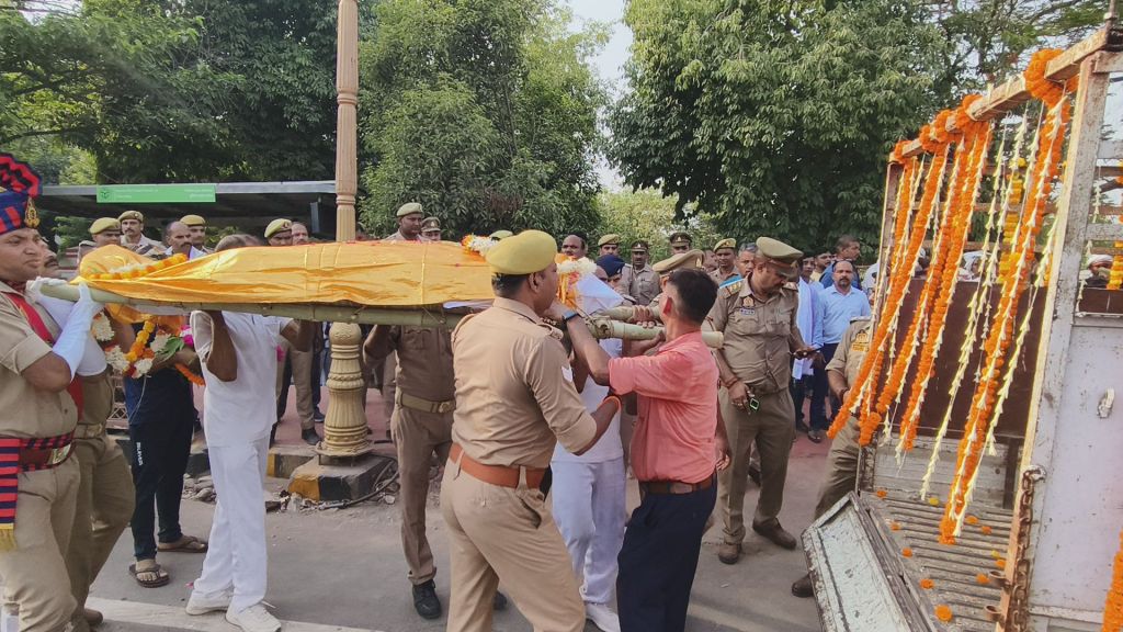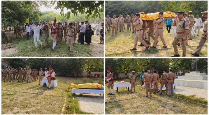 जहां पुलिस जवानों के साथ एडीजी ने शव को कंधा दिया और नम आंखों से श्रद्धांजलि दी। जवानों ने शस्त्र झुकाकर सलामी। इसके बाद पार्थिव शरीर आशापुर आवास पर रवाना करा दिया। जहां परिजनों के अंतिम दर्शन के बाद अंतिम संस्कार के लिए मणिकर्णिका घाट के लिए ले जाया गया। सोमवार को वह लखनऊ से कोई सरकारी कार्य करके वापस अपने घर आशापुर आ रहे थे। तभी हादसा हो गया। अनिल पांडे अपने पीछे पत्नी सहित एक बेटे और बेटी को छोड़ गए।