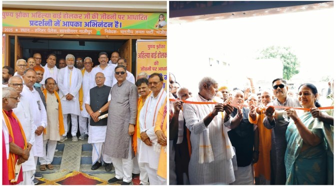 गाजीपुर। लोकमाता अहिल्याबाई होलकर के त्रिशताब्दी जयंती अवसर पर शनिवार को नगर के हरिहर पैलेस में उनके जीवन से जुड़े आदर्शों, संघर्षों, उपलब्धियों सहित आदि विषयों पर प्रदर्शनी लगाई गई। प्रदर्शनी का उदघाटन क्षेत्रीय उपाध्यक्ष सरोज कुशवाहा ने फिता काट कर किया। इस अवसर पर जिलाध्यक्ष ओमप्रकाश राय ने प्रदर्शनी का अवलोकन करते हुए कहा कि इस प्रदर्शनी का उद्देश्य नारी शक्ति सहित सम्पूर्ण भारतीय सभ्यता के लोगों के लिए आदर्श लोकमाता अहिल्याबाई होलकर के 300 वीं जयंती अवसर पर उनके व्यक्तित्व, कृतित्व से जन जन को परिचित कराना है। उन्होंने कहा कि लोकमाता के सहज, सरल व्यक्तित्व मे कुशल शासक, अग्रणी समाज सेवी तथा नैतिक आदर्शवादी गुणों के अतिरिक्त मानवीय संवेदना की प्रबलता थी।