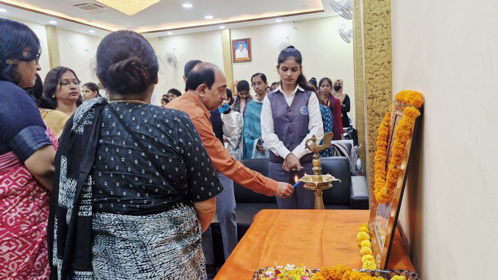 कार्यक्रम का शुभारंभ मुख्य अतिथि प्रो. संगीता देवडिया (वसंत कन्या महाविद्यालय, वाराणसी), प्राचार्य प्रो.(डॉ.) राघवेंद्र कुमार पाण्डेय, डॉ. नेहा मौर्या (राजकीय महिला महाविद्यालय, गाजीपुर) और डॉ. अजीत प्रताप सिंह (सहायक निदेशक,टेरी पीजी कॉलेज) ने बाबू राजेश्वर प्रसाद सिंह की प्रतिमा पर माल्यार्पण और माँ सरस्वती के समक्ष दीप प्रज्ज्वलन कर किया। प्राचार्य ने अतिथियों का पुष्पगुच्छ और स्मृति चिन्ह देकर स्वागत किया।