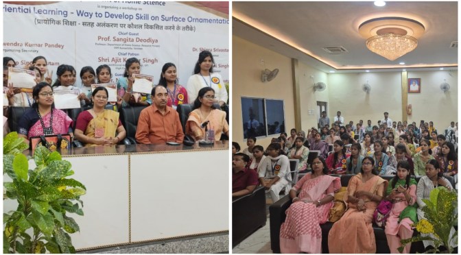 प्रो. संगीता देवडिया ने टाई एंड डाई की तकनीक सिखाई, जो कम संसाधनों में अधिक लाभ कमाने में सहायक है। उन्होंने बताया कि फैशन के चक्रीय परिवर्तन से हस्तशिल्प के पुनर्जनन की संभावनाएं बढ़ी हैं। आधुनिकता के साथ इसका सम्मिश्रण संभव है। प्रबंधक एवं अपर महाधिवक्ता उत्तर प्रदेश सरकार अजीत कुमार सिंह के निर्देशन में महिला सशक्तिकरण और रोजगार सृजन के लिए कार्यशाला आयोजित कराई गयी। जिससे छात्राएं अपनी प्रतिभा निखार सकें और घर बैठे आर्थिक उपार्जन कर सकें। उन्होंने प्रशिक्षण और सुविधाएं उपलब्ध कराने के निर्देश दिए।