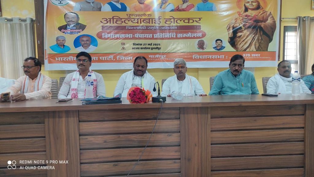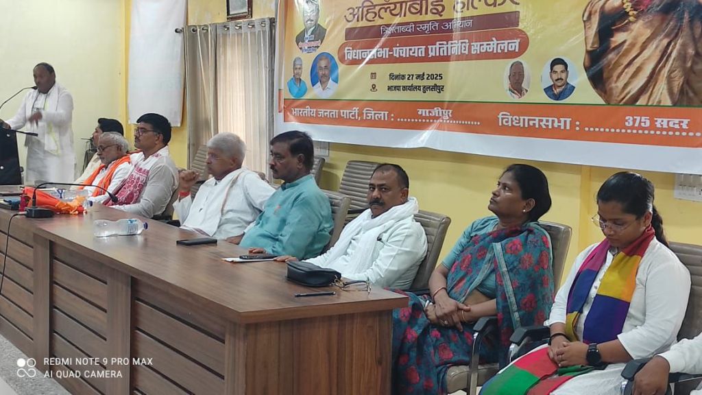 गाजीपुर। अहिल्याबाई होल्कर त्रिशताब्दी स्मृति अभियान अंतर्गत मंगलवार को सदर विधानसभा का जन प्रतिनिधि सम्मेलन भाजपा जिला कार्यालय छावनी लाइन पर जिलाध्यक्ष ओमप्रकाश राय की अध्यक्षता में आयोजित किया गया। सम्मेलन के मुख्य अतिथि जौनपुर जिले के पूर्व जिलाध्यक्ष सुशील उपाध्याय ने कहा कि अहिल्याबाई होल्कर ने अपने शासनकाल में सोच से परे, सामर्थ्य से ज्यादा काम किया है। उनके शासन व्यवस्था में बदलाव, सुधार,सृजन, निर्माण, परिवर्तन सहित सभी क्षेत्रों में अद्वितीय क्षमता से कार्य कराए गए है। उन्होंने कहा कि समावेशी शक्ति की प्रतीक अहिल्याबाई होल्कर ने नारी सशक्तिकरण, विधवा महिलाओं के अधिकार, महिला सेना का गठन कर उन्हें सशस्त्र प्रशिक्षण देकर युद्ध विद्य से मजबूत बनाया। उन्होंने कहा कि अहिल्याबाई होलकर सनातन धर्म की संरक्षिका थी उनका जीवन अध्यात्मिकता, धर्म -कर्म और सुशासन का अनुपम संगम था।
