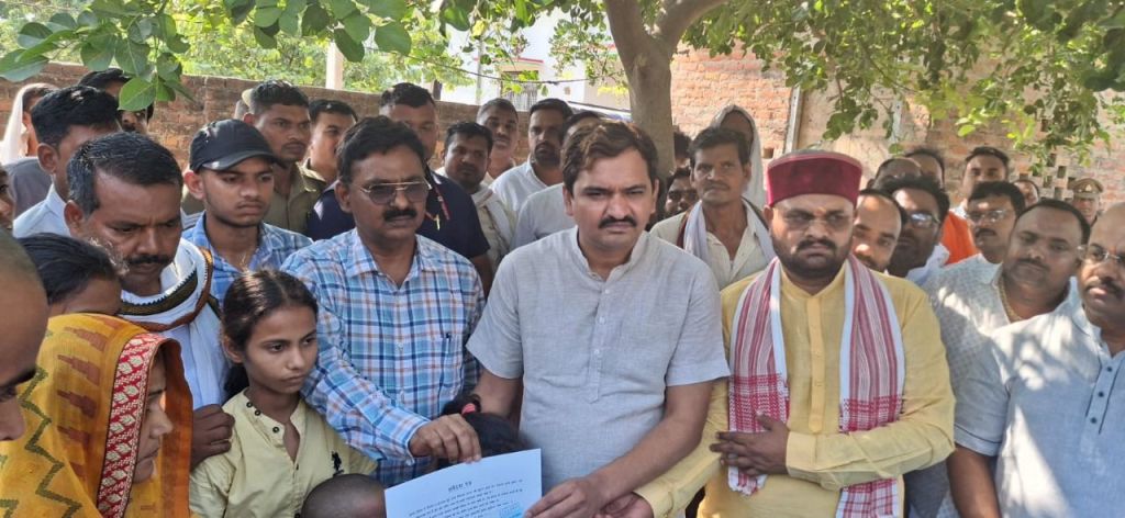 मृतक के बच्चें श्रेया, साक्षी, आर्यशी, आर्यन की पढ़ाई हेतु भी सहयोग करने का भी वादा करते हुए परिजनों को सांत्वाना दिया। मृतक अमन यादव के पिता हीरालाल यादव, मृतक गोरख यादव के पिता कुन्नू यादव को भी पांच लाख रूपये का चेंक प्रदान किया। मृतक रविन्द्र उर्फ कल्लू सिपाही की पत्नी रीमा यादव को ढ़ढास बढाते हुए हर सम्भव मदद दिलाने को कहा। पूजा के आयोजक सुरेन्द्र पंथी से भेंटकर घटना की विस्तृत जानकारी लेते हुए घायल संतोष यादव, पवन यादव, अभोरिक यादव, जितेन्द्र यादव का कुशलक्षेम पूछते हुए हर सभंव मदद दिलाने व करने का आश्वासन दिया। एमएलसी ने कहा कि इस दुःख की घड़ी में परिवारजनों के साथ उ0प्र0 सरकार एवं जिला प्रशासन है।