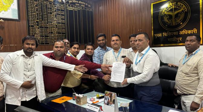 एनएचएम संविदा कर्मचारी संघ गाजीपुर ने जिलाधिकारी तथा मुख्य चिकित्सा अधिकारी को सौंपा ज्ञापन