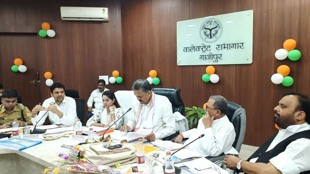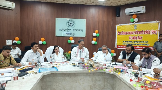 गाजीपुर।जिला विकास समन्वय एंव निगरानी समिति (दिशा) की बैठक शनिवार को कलेक्ट्रेट सभागार मे सम्पन्न हुई। बैठक की सांसद अफजाल अंसारी की अध्यक्षता एवं सांसद बलिया सनातन पाण्डेय, जिला पंचायत अध्यक्ष सपना सिंह विधायक जमानियां ओम प्रकाश सिंह, विधायक मोहम्मदाबाद सुहेब उर्फ मन्नू अंसारी,विधायक सदर जै किशन साहू, विधायक जखनियां बेदीराम, नगर पालिका अध्यक्ष सरिता अग्रवाल, जिलाधिकारी अविनाश कुमार, पुलिस अधीक्षक डा.ईरज राजा एंव ब्लाक प्रमुखो, नामित प्रधानगणो की उपस्थिति में सम्पन्न हुआ। बैठक मे सांसद द्वय द्वारा सदन की कार्यवाही प्रारंभ की गई। बैठक मे जिलाधिकारी अविनाश कुमार ने बैठक का एजेंडा बिन्दू विस्तारपूर्वक समिति के सम्मुख पी पी टी के माध्यम से प्रस्तुत किया गया।