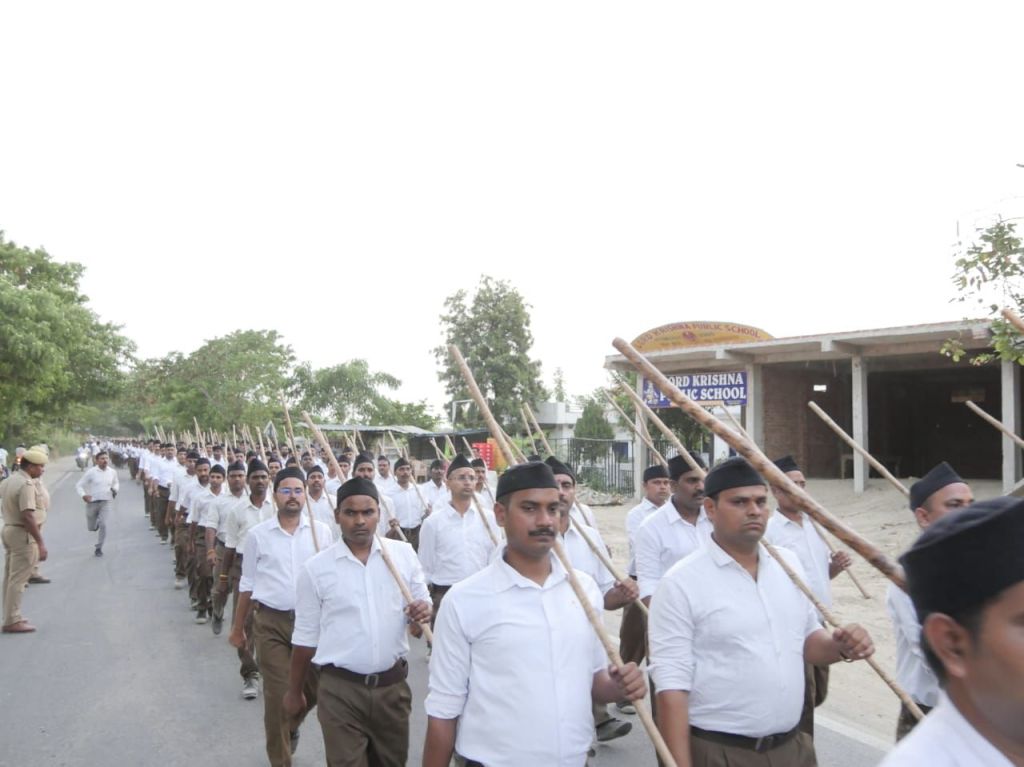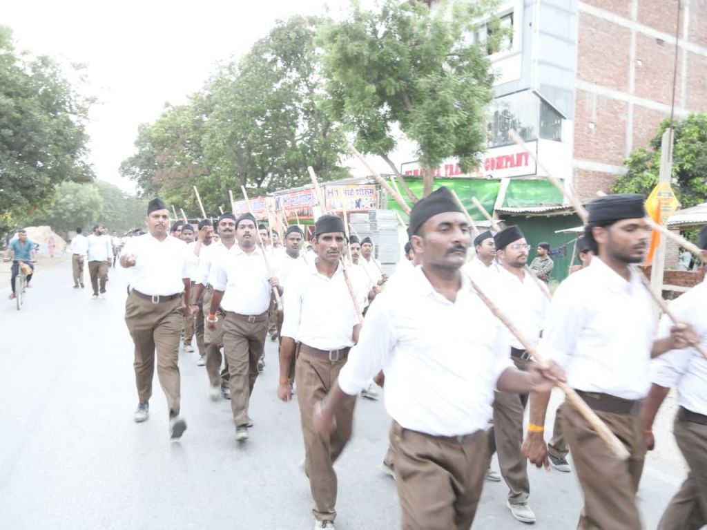पूर्ण गणवेश में रविवार को मुख्य मार्ग पर विराट पथ संचलन करके एकता,अनुशासन एवं राष्ट्रभक्ति का संदेश दे रहे स्वयंसेवक सैनिक की भांति राष्ट्र रक्षा का संकल्प ले रहे थे। हाथों में दंड एवं हृदय में राष्ट्रभक्ति का भाव संजोए कदम से कदम मिलाते स्वयंसेवकों के पथ संचलन को देखने राहगीर रुक गए।