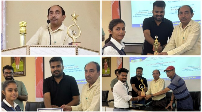 गाजीपुर। गोराबाजार स्थित तकनीकी शिक्षा एवं शोध संस्थान (टेरी), पी.जी. कॉलेज के सभागार में सोमवार को “स्पोर्ट्स अवार्ड सेरेमनी” का सोमवार को भव्य आयोजन किया गया। यह कार्यक्रम विश्वविद्यालय के निर्देशों और भारत सरकार के “खेलो इंडिया” पहल के तहत आयोजित हुआ, जिसमें बैडमिंटन, क्रिकेट सहित विभिन्न खेलों के विजेता और उपविजेता प्रतिभागियों व टीमों ने हिस्सा लिया।