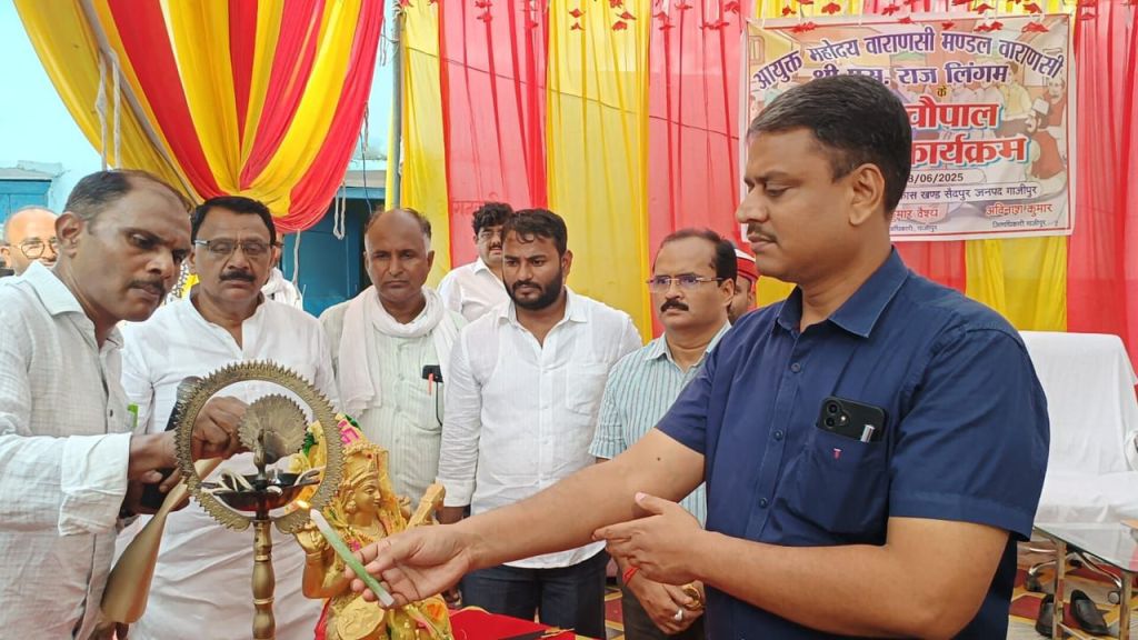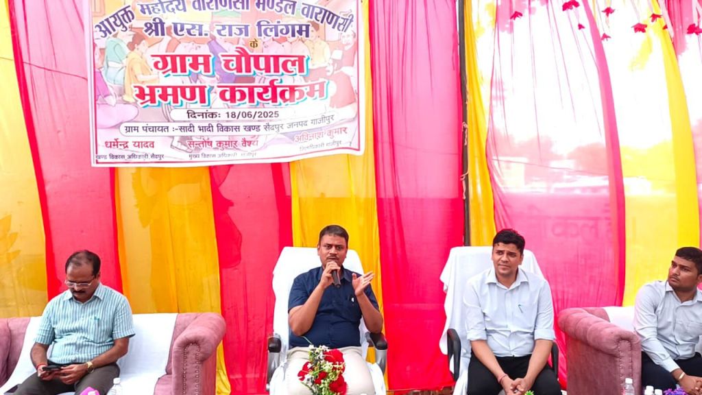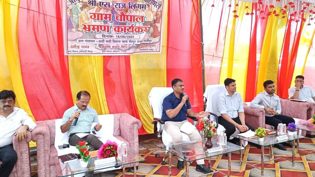 गाजीपुर। जनपद के नोडल अधिकरी आयुक्त वाराणसी मण्डल वाराणसी एस राजलिंगम का बुधवार को जपनद भ्रमण कार्यक्रम सम्पन्न हुआ। भ्रमण के दौरान आयुक्य की अध्यक्षता में ग्राम चौपाल का आयोजन विकास खण्ड सैदपुर अन्तर्गत प्राथमिक विद्यालय शादी-भादी मे किया गया। कार्यक्रम का शुभारम्भ मॉ सरस्वती के चित्र पर माल्यर्ण एंव दीप प्रज्ज्वलित कर किया गया।
