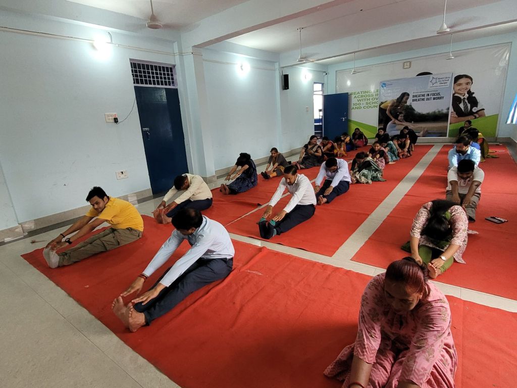 कार्यक्रम के दौरान शिक्षकों ने विभिन्न योगासन एवं प्राणायाम का अभ्यास किया और तनावमुक्त, स्वस्थ एवं सशक्त जीवन के लिए योग को अपनी दिनचर्या में शामिल करने का संकल्प लिया।
