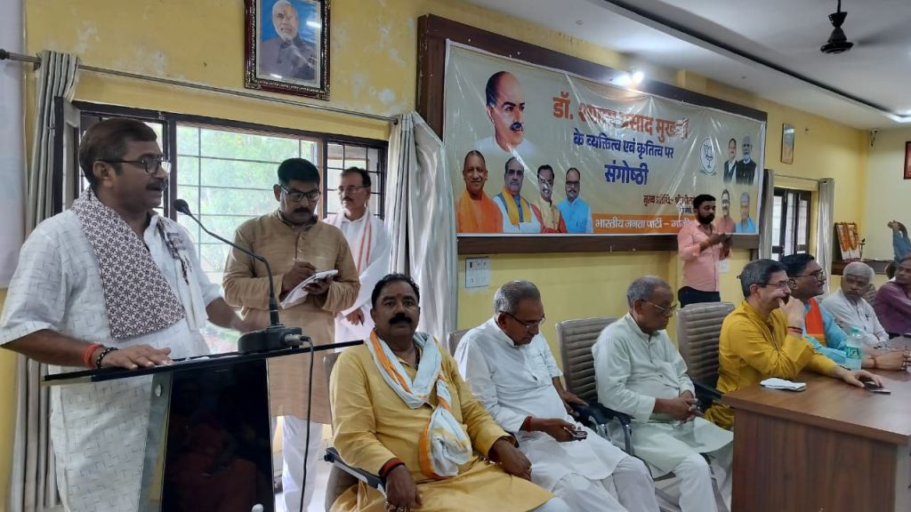 कार्यक्रम का संचालन जिला महामंत्री दयाशंकर पांडेय ने किया। कार्यक्रम का शुभारंभ मुख्य अतिथि द्वारा पं दीनदयाल उपाध्याय व डॉक्टर श्यामा प्रसाद मुखर्जी के चित्र पर पुष्पांजलि व दीप प्रज्वलित कर किया गया। इसके अलावा भाजपा जिला कार्यालय पर आयोजित संगोष्ठी को पूर्व जिलाध्यक्ष सुनील सिंह, बृजेंद्र राय, भानु प्रताप सिंह, पारस नाथ राय, सपना सिंह, सरिता अग्रवाल, पूर्व मंत्री विजय मिश्रा, पूर्व विधायक कालीचरण राजभर, भोनू सोनकर, सुनीता सिंह, रमेश सिंह पप्पू , रामराज बनवासी, राम नरेश कुशवाहा आदि ने संबोधित किया। इस अवसर पर राजेश राजभर,अवधेश राजभर, जितेन्द्र नाथ पांडेय,संकटा प्रसाद मिश्रा, साधना राय, शैलेश राम, अनिल राजभर, अखिलेश सिंह, विश्व प्रकाश अकेला, अखिलेश सिंह, श्याम राज तिवारी, लालसा राजभर, सरोज मिश्रा, किरण सिंह, जिला मीडिया प्रभारी शशिकांत शर्मा सहित पार्टी कार्यकर्ता उपस्थित रहे।