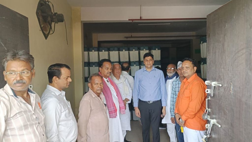 गाजीपुर।अविनाश कुमार, जिलाधिकारी/ जिला निर्वाचन अधिकारी द्वारा जिला कार्यालय स्थित ईवीएम गोदाम का शुक्रवार को त्रैमासिक (आंतरिक) निरीक्षण किया गया। इस दौरान ईवीएम गोदाम को मान्यता प्राप्त राजनीतिक दलों के प्रतिनिधियों की उपस्थिति में खोला गया। ईवीएम/वीवीपैट मशीनों के रख -रखाव एवं सुरक्षा व्यवस्था की विस्तृत समीक्षा की गई। इस अवसर पर विभिन्न अधिकारीगण एवं राजनीतिक दलों के प्रतिनिधि उपस्थित रहे, जिनमें दिनेश कुमार, अपर जिलाधिकारी (वि०/रा०)/गाजीपुर, विपिन कुमार सिंह, सहायक आयुक्त एवं सहायक निबन्धक, सहकारिता गाजीपुर, देवी प्रसाद सिंह, प्रभारी सहायक जिला निर्वाचन अधिकारी गाजीपुर, रविकान्त राय, (भारतीय राष्ट्रीय कांग्रेस) राजेश कुमार यादव (समाजवादी पार्टी), राजन कुमार प्रजापति (भारतीय जनता पार्टी), सुभाष राम सिपाही (बहुजन समाज पार्टी), जावेद अहमद (आम आदमी पार्टी) तथा अन्य गणमान्य व्यक्ति शामिल थे ।