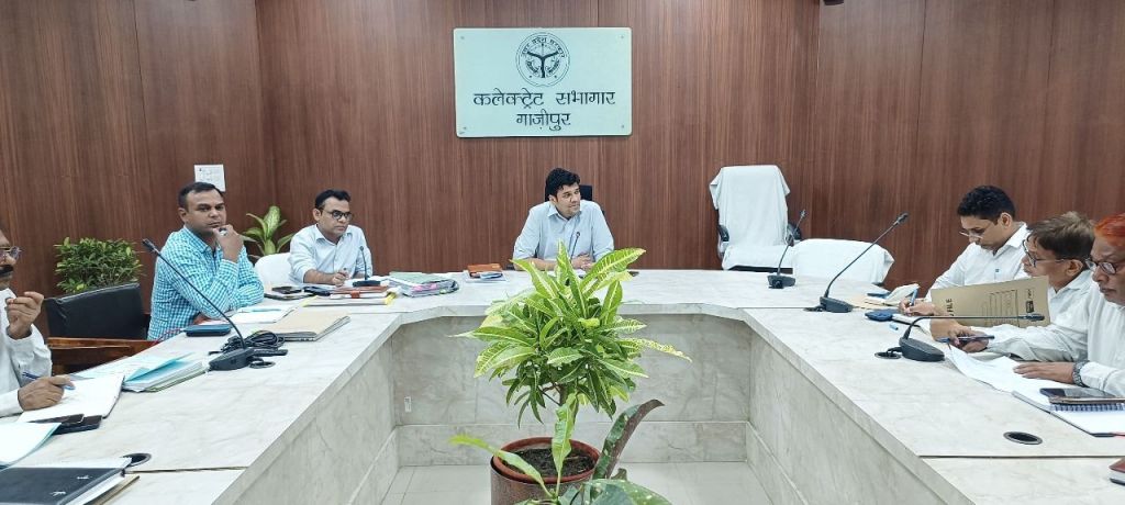 गाजीपुर। जिलाधिकारी अविनाश कुमार की अध्यक्षता में कर-करेत्तर एंव मासिक स्टाफ बैठक कलेक्ट्रेट सभागार में सीएम डैशबोर्ड दर्पण पर सम्पन्न हुआ। बैठक के दौरान कर-करेत्तर की समीक्षा में जिलाधिकारी ने परिवहन,वन विभाग, स्टाम्प, नगर पालिका, आडिट आपत्ति, चकबन्दी, व्यापार कर, विद्युत देय, आबकारी, अंश निर्धारण, मोटर देय, आईजीआरएस, के संबंध मे विस्तारपूर्वक समीक्षा की। उन्होने वाणिज्य कर एवं खनन विभाग को राजस्व वसूली बढाने का निर्देश देते हुए कहा कि संबंधित अधिकारी अपने-अपने लक्ष्य के सापेक्ष वसूली कराना सुनिश्चित करे। इसमें किसी प्रकार की लापरवाही क्षम्य नही होगी। बैठक मे समीक्षा के दौरान आईजीआरएस की समीक्षा के दौरान समस्त उपलिाधिकारी एवं तहसीलदार को सख्त निर्देश देते हुए कहा कि किसी भी शिकायत का निस्तारण निश्चित समयान्तराल मे शिकायतकर्ता से वार्ता कर निस्तारण किया जाए। अन्यथा निस्तारण न होने के कारण तत्काल विभागीय कार्यवाही की जाएगी, डिफाल्टर होने पर की दशा में अधिकारी स्वमं जिम्मेदार होगे ।