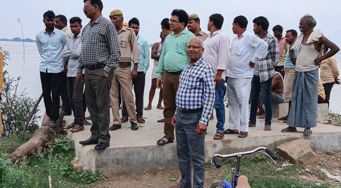 गाजीपुर। गंगा नदी में बढते हुए जलस्तर एवं संभावित बाढ़ के दृष्टिगत उपजिलाधिकारी सदर मनोज पाठक ने सोमवार को तहसील सदर अन्तर्गत विभिन्न ग्रामों का स्थलीय निरीक्षण किया। निरीक्षण के दौरान उन्होंने गॉव के आने जाने वाले रास्तो, ग्रामीणो एवं पशुओ की सुरक्षा पुख्ता इंतेजाम, चारा, पानी, दवाईयो, आदि की जानकारी ली तथा सम्बन्धित मातहतों को आवश्यक निर्देश दिये। उपजिलाधिकारी ने आज संभावित बाढ से प्रभावित होने वाले ग्राम महाबलपुर, लखनचनपुर, गोसंदेपुर, दीनापुर, तुलसीपुर, सीखनी, बड़हरिया, आदि ग्रामों का निरीक्षण किया। इस दौरान तहसीलदार सदर , कानूनगो, लेखपाल ग्राम प्रधान मौजूद रहे।