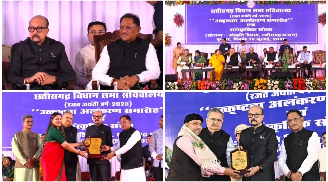 16 जुलाई को हुए इस कार्यक्रम में राज्यपाल ने कहा कि “उत्कृष्टता अलंकरण समारोह” केवल व्यक्तिगत उपलब्धियों के सम्मान का नहीं, बल्कि हमारी संसदीय परंपराओं को मजबूत करने का माध्यम भी है। उन्होंने सभी पत्रकारों और विधायकों से आग्रह किया कि वे अपनी राजनीतिक प्रतिबद्धताओं से ऊपर उठकर सदैव लोकहित और जनकल्याण को प्राथमिकता दें। समारोह की अध्यक्षता विधानसभा अध्यक्ष डॉ. रमन सिंह ने की, जबकि मुख्यमंत्री विष्णु देव साय और नेता प्रतिपक्ष डॉ. चरणदास महंत विशिष्ट अतिथि के रूप में मौजूद रहे। कार्यक्रम में वर्ष 2024 के लिए उत्कृष्ट विधायक के रूप में भावना बोहरा और लखेश्वर बघेल को सम्मानित किया गया। उत्कृष्ट संसदीय रिपोर्टिंग के लिए डॉ. राकेश पांडेय के साथ-साथ सुदर्शन न्यूज़ के राज्य ब्यूरो प्रमुख योगेश मिश्रा और कैमरामेन विश्वप्रकाश पुरेना को भी सम्मानित किया गया। मुख्यमंत्री श्री साय ने कहा कि छत्तीसगढ़ विधानसभा ने संसदीय मर्यादा और अनुशासन का उदाहरण पेश किया है। यहां जनहित के मुद्दों पर गहनता से चर्चा होती है और मीडिया की सजगता से लोकतंत्र की पारदर्शिता सुनिश्चित होती है।