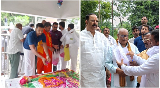 ब्लॉक प्रमुख प्रतिनिधि और भाजपा नेता आनंद राय मुन्ना ने श्रद्धांजलि देकर सुंदरीकरण का किया वायदा।