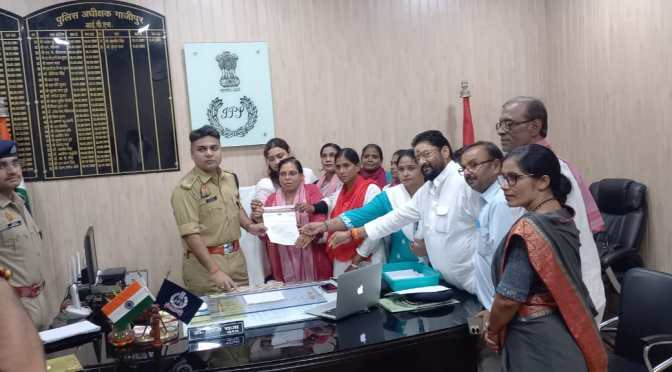गाजीपुर। मंगलवार को समाजवादी पार्टी की महिला सभा की जिलाध्यक्ष विभा पाल के नेतृत्व में मैनपुरी सांसद डिम्पल यादव के विरुद्ध मौलाना साजिद रशीदी द्वारा अभद्र टिप्पणी किये जाने के खिलाफ एफआईआर दर्ज करने एवं उन्हें तत्काल गिरफ्तार करने की मांग को लेकर पुलिस अधीक्षक गाजीपुर को ज्ञापन सौंपा।