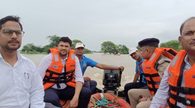 जिलाधिकारी ने तहसील सेवराई अन्तर्गत हसनपुरा,नसीरपुर, बिरऊपुर व मकदुमपुर का नाव के माध्यम से स्थलीय निरीक्षण किया। ग्रामवासियों से उनका स्वास्थ्य लाभ जाना। जिलाधिकारी ने उपजिलाधिकारी सेवराई को बाढ प्रभावित लोगो को राहत समाग्री व लंच पैकेट तथा पशुओ के लिए चारा व भूसा की उपलब्धता सुनिश्चित कराने का निर्देश दिया। इसके साथ ही उन्होने बाढ़ प्रभावित ग्रामो मे नावो की संख्या बढाने का भी निर्देश दिया।