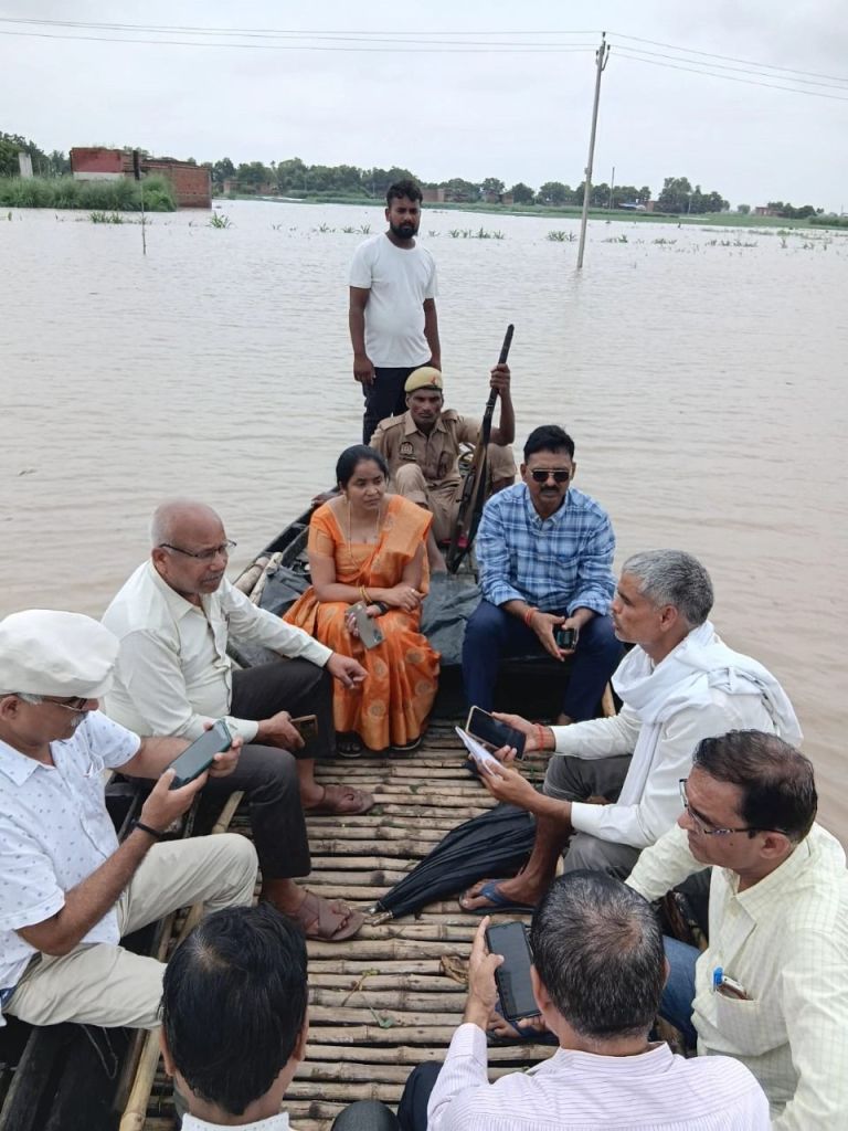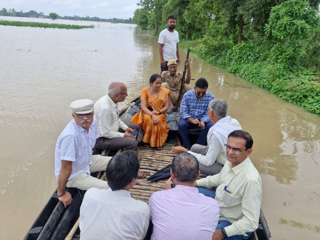 गाजीपुर। गंगा नदी का जलस्तर बढ़ जाने के कारण बाढ़ की स्थिति उत्पन्न हो गई है।उपजिलाधिकारी सदर मनोज पाठक द्वारा बाढ़ से प्रभावित गॉव शेरपुर, तुलसीपुर, रफीपुर, सोकनी बडहरियां, बडसरा बडहरिया, महबलपुर, गद्दोगाडा, सोलहनपुर का निरीक्षण किया गया। उन्होने बताया कि तहसील सदर गाजीपुर के 31 ग्राम अभी तक प्रभावित हुए है। जिनमें 19 ग्रामों के सम्पर्क मार्ग में पानी आ जाने के कारण 52 नौकाओं का संचालन प्रारम्भ कर दिया गया है। उक्त बाढ़ प्रभावित ग्रामों में राहत एवं बचाव हेतु कार्ययोजना बनाई गयी है, जिसका क्रियान्वयन प्रारम्भ हो गया है। तहसील मुख्यालय मे बाढ़ कन्ट्रोल रूम स्थापित किया गया है, जिसका नम्बर- 0548- 2221334 है, सोलह बाढ़ चौकियां 05 बाढ़ शरणालय क्रियाशील है। बाढ़ से प्रभावित व्यक्तियों को आज 800 लंच पैकेट का वितरण किया गया। बाढ़ चौकियों व बाढ़ शरणालयों में मूलभूत सुविधाओं- स्वच्छ पेय जल, विद्युत शौचालय, भोजन, गद्दों, जनरेटर आदि की व्यवस्था की गई है। चिकित्सीय उपचार हेतु चिकित्सक व पशु चिकित्सक आवश्यक दवाओं के साथ शरणालयों में उपस्थित है। पशुओं के लिए चारा/भूसा की व्यवस्था की गई है। राजस्व विभाग, पुलिस विभाग, पंचायत विभाग, ,खाद्य-रसद विभाग व अन्य विभाग के अधिकारी/कर्मचारियों की तैनाती की गई है। मौके पर खण्ड विकास अधिकारी करण्डा, सहायक खण्ड विकास अधिकारी करण्डा, ग्राम प्रधान, राजस्व विभाग की टीम उपस्थित रहें।