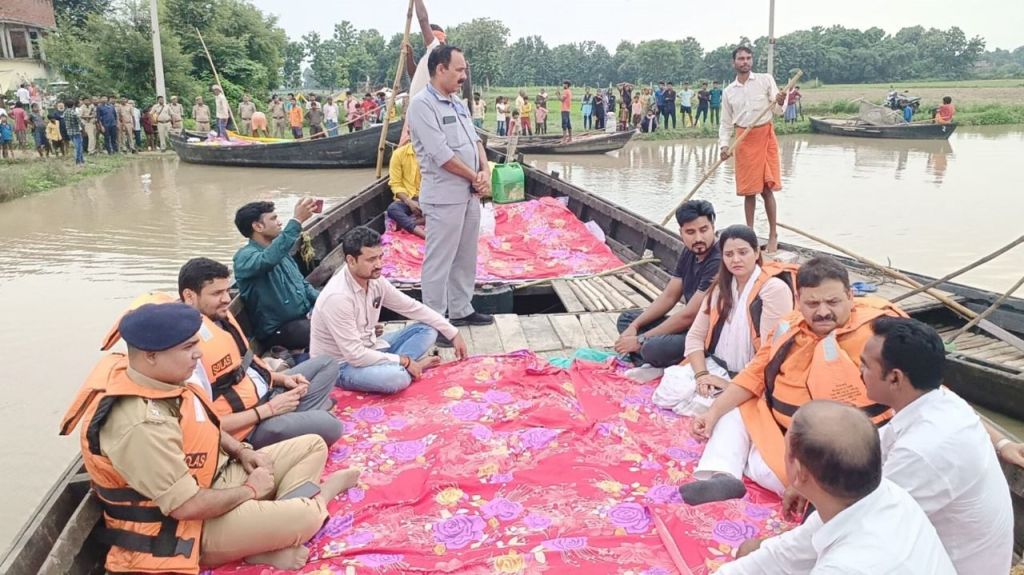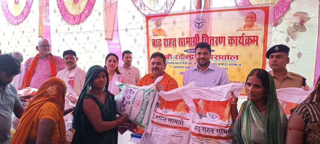 उन्होने बताया कि जनपद मे बाढ़ का पानी अब स्थिर हों गया हैं इसके बावजूद भी सरकार एवं जिला प्रशासन पूरी तरह से अलर्ट मोड पर है। उन्होंने कहा कि आज प्रत्येक बाढ़ पीड़ित परिवार को एक सप्ताह के लिए करीब 50 किलो राहत सामग्री दी जा रही है। साथ ही पशुओं के लिए चारे की व्यवस्था, सुरक्षा के लिए नावों की तैनाती और पुलिस पेट्रोलिंग भी लगातार जारी है। बाढ़ का पानी कम ना होने की दशा मे पुनः दोबारा राहत किट का वितरण किया जाएगा। उन्होंने प्रेस मीडिया से आग्रह किया कि ऐसे व्यक्ति जो बाढ प्रभावित है तथा राहत सामग्री पाने से वँचित रह गए हैं उनकी सूची उपलब्ध करादें ताकि उन्हें भी राहत समाग्री उपलब्ध कराई जा सके। उन्होने बताया कि ऐसे गॉव जो बाढ के चपेट मे है और वहा खाना नहीं पक रहा है, वहां तैयार भोजन किट के माध्यम से उपलब्ध कराया जा रहा है। बच्चों के लिए दूध बिस्किट, पूड़ी सब्जी की भी व्यवस्था की गयी हैं। मंत्री ने स्पष्ट कहा कि ‘‘मानव सेवा ही मानव धर्म है ‘‘ सरकार बाढ़ पीड़ितों के साथ है और बाढ़ से हुए नुकसान की भरपाई की जाएगी। इस अवसर पर जिलाधिकारी अविनाश कुमार, पुलिस अधीक्षक डा.ईरज राजा, अपर जिलाधिकारी वि0रा0 दिनेश कुमार, एंव अन्य अधिकारी/कर्मचारीगण, जनप्रतिनिधिगण उपस्थित थे।