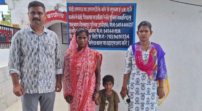 गाजीपुर। जीआरपी थाना पुलिस ने सोमवार को एक नाबालिक बच्ची को ऑपरेशन मुस्कान और चेकिंग के दौरान पाया । उसके बाद बच्ची के परिजनों को बुलाकर नियम अनुसार कार्रवाई करके जीआरपी थानाध्यक्ष जितेन्द्र कुमार सिंह ने सुपुर्द कर दिया। बता दे की मां-बाप से बिछड़ जाने के बाद बच्ची स्टेशन के प्लेटफार्म पर रोती हुई महिला कांस्टेबल अंकित त्रिपाठी और सुमित्रा पटेल को मिली। तत्पश्चात खोजते हुए बालिका की माँ रिंकू डोम पत्नी फेकाहू निवासी रददोपुर कालोनी थाना कोतवाली आयी। जिन्हे नियमानुसार उपरोक्त बालिका को सुपुर्द किया गया। जिसकी मौके पर लोगो के द्वारा इस कार्य की भूरी-भूरी प्रसंशा की गयी ।
