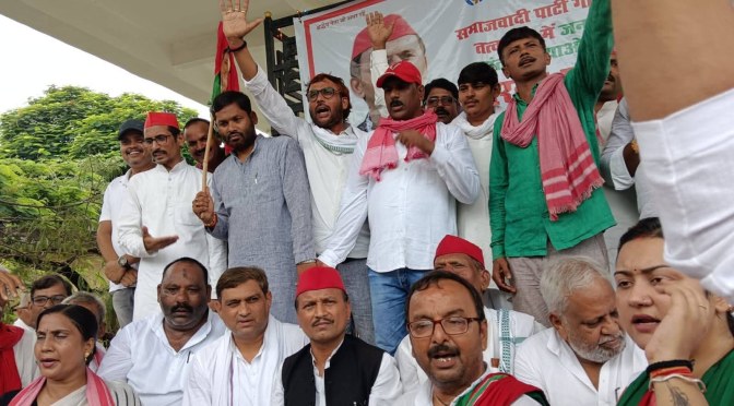 गाजीपुर।13अगस्त को समाजवादी पार्टी के जिलाध्यक्ष गोपाल यादव की नेतृत्व में बाढ़ पीड़ितों को राहत सामग्री पहुंचाने,बाढ़ ग्रस्त एरिया में संक्रामक रोगों से बचने हेतु डाक्टर व दवा की व्यवस्था करने, कटौती खत्म कर किसानों को नित्य बीस घंटे बिजली उपलब्ध कराने, बिजली विभाग द्वारा गलत बीलिंग रोकने,जले ट्रांसफार्मरों को तत्काल बदलने, जनपद की टूटी सड़कों की तत्काल मरम्मत कर गड्ढा मुक्त करने, सहकारी समितियों पर खाद उपलब्ध कराने व उसकी कालाबाजारी रोकने, ध्वस्त कानून व्यवस्था दूरूस्त करने, थानों, तहसीलों पर फरियादियों के साथ किए जा रहे लूट खसोट को रोकने, बिजली के जर्जर तारों और खंम्भो को बदलने,शहर में बिछ रहे सीवर लाइन के चलते नगर की सड़कों की तत्काल मरम्मत कराने की मांग के साथ सरजू पांडे पार्क में धरना प्रदर्शन किया गया।