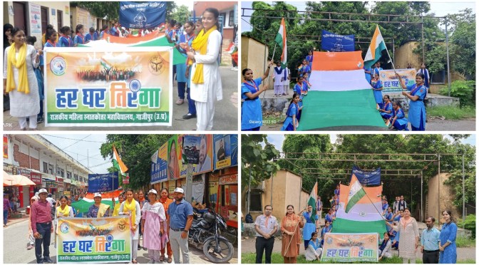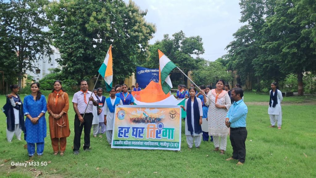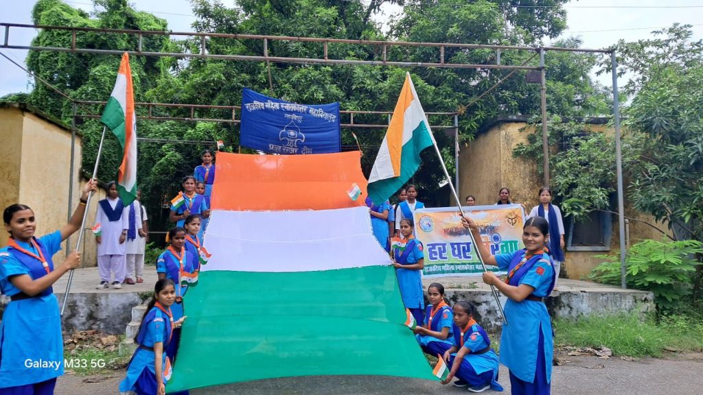 गाजीपुर। राजकीय महिला स्नातकोत्तर महाविद्यालय महुआबाग में आज़ादी के अमृत महोत्सव के अंतर्गत “हर घर तिरंगा” अभियान के तहत बृहस्पतिवार को प्रज्ञा रेंजर्स एवं राष्ट्रीय सेवा योजना द्वारा “वृहद तिरंगा कार्यक्रम” एवं “हर घर तिरंगा रैली” का आयोजन किया गया।