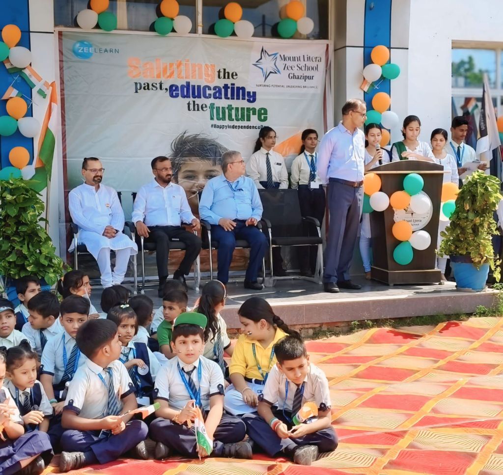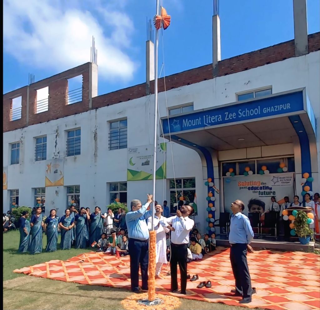 गाजीपुर। माउंट लिट्रा ज़ी स्कूल ने 15 अगस्त 2025 स्वतंत्रता दिवस के पर्व को मनाने अपने देश के वीर शहीदों की शहादत को याद करने और श्रद्धा-सुमन अर्पित करने हेतु, बच्चों के शैक्षिक, नैतिक एवं मौलिक गुणों के विकास के लिए वचनबद्ध 79वीं वर्षगांठ धूम-धाम से मनाया ।