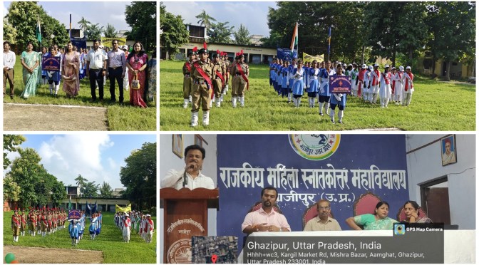 गाजीपुर। 15 अगस्त 2025 को राजकीय महिला स्नातकोत्तर महाविद्यालय महुआबाग में 79वां स्वतंत्रता दिवस समारोह हर्षोल्लाह के साथ मनाया गया ।कार्यक्रम का शुभारंभ प्राचार्य प्रोफेसर डॉ अनिता कुमारी द्वारा ध्वजारोहण करके किया गया। तत्पश्चात राष्ट्रगान का समवेत गायन किया गया । डॉ नेहा कुमारी (असि. प्रो. गृह विज्ञान) ने निदेशक,उच्च शिक्षा प्रयागराज के संदेश का वाचन किया।