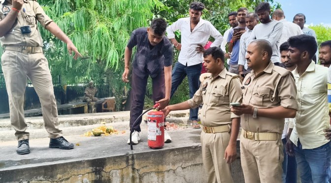इसी क्रम में अग्निसचेतकों के साप्ताहिक प्रशिक्षण अग्निशमन स्टेशन गाजीपुर (पुलिस लाईन) में विशाल शुक्ला, उदय राज यादव एवं मनोज कुमार द्वारा सोमवार से शनिवार तक 50 बच्चो का बैच के माध्यम से आग से कैसे बचाया जा सके एवं कैसे रोका जा सके का प्रशिक्षण 21 बिन्दुओं पर दिया जा रहा है। जिस क्रम में उदय राज यादव एवं विशाल शुक्ला द्वारा प्रथम बिन्द आग के प्रकार एवं उस पर प्रयोग होने वाले अग्निशमन उपकरणों की जानकारी, प्राथमिक अग्निशमन उपकराणों की संचालन एवं रख-रख, फायर ट्रेंगल की जानकारी, आग एवं धुएं से सुरक्षित हेतु बचाव, होज रील के प्रयोग, वेटराइजर, डाउनकमर एवं लैंडिंग वॉलब की जानकारी, फायर पम्पों के प्रकार एवं कैसे आग लग जाने पर प्रयोग किया जाए, इसके बारे में प्रशिक्षण,होज व ब्रॉच पाइप का प्रयो, उसे फैलाने एवं लपेटने की जानकारी, ब्रॉच पाइपों के प्राकर, मैनुवल कॉल प्लाइंट की जानकारी, ऑटोमैटिक स्पिंरकलर्स सिस्ट की जानकारी, ऑटोमैटिक डिटेक्शन एण्ड अलार्म सिस्टम,स्मोक एक्सटैक्शन सिस्टम की जानकारी, प्रेसराईजेशन फैन, फायर मैन लिफ्ट, आग के प्रसार को रोकने, साल्वेज की जानकारी एवं फसलो में आग लगने के बाद कैसे नियंत्रित करने का प्रशिक्षण एवं जानकारी विस्तार पूर्वक बारी बारी दिया जा रहा है,लाभार्थियों द्वारा प्रशिक्षण के दौरान प्रयोगार्थ हेतु मौके पर उन वस्तुओं से जो आग से कैसे बचाया जा सके एवं लोगो को कैसे बचाया जा सके माक ड्रील के माध्यम से सभी लाभार्थियों द्वारा बारी बारी से एक-एक करके प्रयोग भी कराया गया। सरकारी विभागो, मौल, प्राइवेट कम्पनियों, घरो में एवं अन्य वस्तुओं में आग लग जाने पर लाभार्थियों द्वारा आग को कैसे बुझाया जा सके इसके बारे में मौके पर उपस्थित बच्चो द्वारा आग लगने के बाद गैस के माध्यम से आग को बुझाया गया का प्रयोग एक-एक करके कराया गया। इस अवसर पर अभय नारायण सिंह, वैभव शर्मा एवं विभाग के कर्मचारी प्रशिक्षण में उपस्थित रहे।