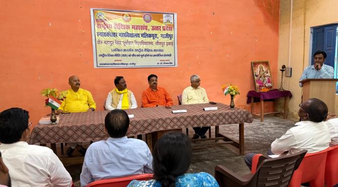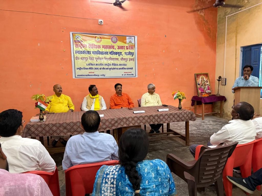गाजीपुर। राष्ट्रीय शैक्षिक महासंघ, उत्तर प्रदेश तथा अखिल भारतीय राष्ट्रीय शैक्षिक महासंघ के संयुक्त तत्वावधान में पी. जी. कॉलेज, मलिकपूरा में राष्ट्रीय शिक्षा नीति 2020 की पाँचवीं वर्षगाँठ के अवसर पर एक दिवसीय संगोष्ठी सम्पन्न हुई।