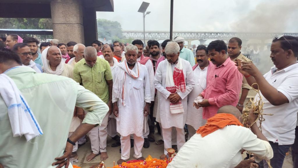 गाजीपुर। पूर्व विधान परिषद सदस्य बच्चा यादव का राजकीय सम्मान के साथ शुक्रवार को श्मशानघाट पर अंत्येष्टि संस्कार हुआ।इस अवसर पर भारतीय जनता पार्टी जिलाध्यक्ष ओमप्रकाश राय ने दुख व्यक्त किया साथ ही पार्टी नेताओं कार्यकर्ताओं के साथ श्मशान घाट पहुंच कर उनके पार्थिव शरीर पर माल्यार्पण कर श्रद्धांजलि दिया। भाजपा की ओर से पूर्व महामंत्री रामनरेश कुशवाहा, विधान परिषद सदस्य प्रतिनिधि डा प्रदीप पाठक, जिला मीडिया प्रभारी शशिकान्त शर्मा,अर्जून सेठ, धनेश्वर बिंद, हेमंत त्रिपाठी, रासबिहारी राय,सुबाष चौहान, राकेश यादव सहित आदि अन्य ने पार्थिव शरीर पर माल्यार्पण कर श्रद्धांजलि अर्पित किया।