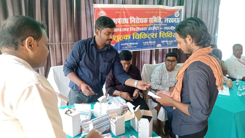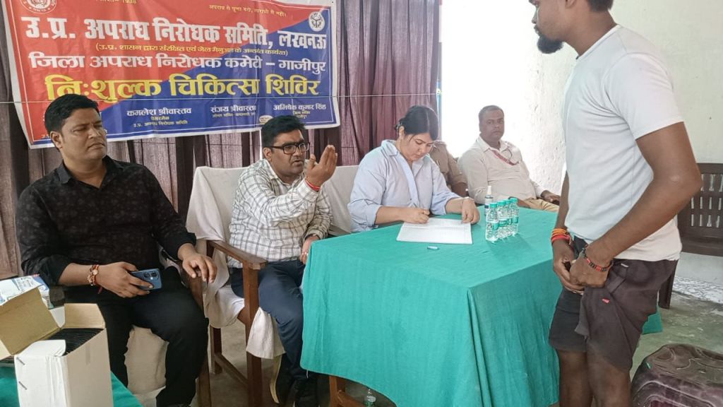 गाजीपुर। उत्तर प्रदेशीय अपराध निरोधक समिति लखनऊ के चेयरमैन कमलेश श्रीवास्तव के निर्देशानुसार शुक्रवार को जिला अपराध निरोधक कमेटी के बैनर तले महर्षि विश्वामित्र स्वशासी चिकित्सा महाविद्यालय के प्राचार्य डॉ आनन्द मिश्रा के सहयोग से जिला कारागार में डा. अनुकृति सिंह के साथ डॉ. संतोष कुमार यादव , रोहित प्रकाश वर्मा (फार्मासिस्ट) , जेल के डॉ. संतोष जायसवाल , भुवनेश कुमार (फर्मासिस्ट) चर्मरोग (त्वचा रोग) शिविर का आयोजन किया गया था।