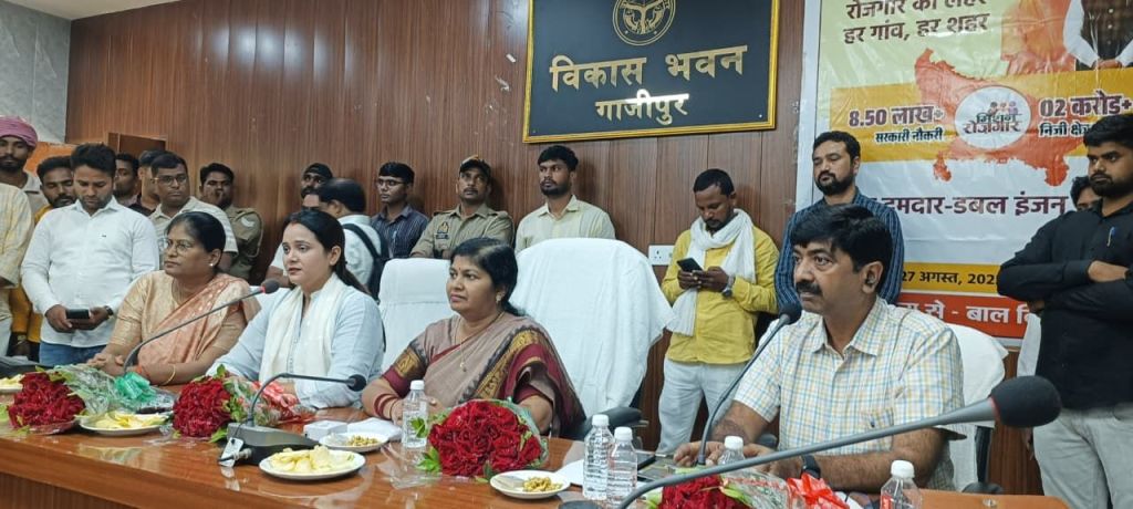 गाजीपुर।उत्तर प्रदेश अधीनस्थ सेवा चयन आयोग द्वारा संचालित पारदर्शी एवं निष्पक्ष भर्ती प्रक्रिया के अंतर्गत चयनित मुख्य सेविकाओं एवं फार्मासिस्टो का नियुक्ति वितरण कार्यक्रम लखनऊ से मुख्यमंत्री योगी आदित्यनाथ कर कमलो द्वारा सम्पन्न हुआ। पूरे प्रदेश में 2425 मुख्य सेविकाओं एवं 13 फार्मासिस्टों को नियुक्त पत्र दिया गया। इस अवसर पर विकास भवन सभागार में लाईव प्रसारण के माध्यम से मुख्यमंत्री योगी आदित्यनाथ द्वारा आयोजित राज्य स्तरीय नियुक्ति पत्र वितरण कार्यक्रम का लाइव प्रसारण देखा व सुना गया। जिसमें प्रदेशभर में हजारों अभ्यर्थियों को नई जिम्मेदारियां सौंपी गईं। मुख्यमंत्री ने कहा कि नई नियुक्तियाँ प्रदेश की विकास यात्रा को नई गति देंगी।