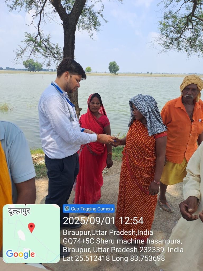 गाजीपुर।गंगा नदी का जलस्तर अब घटाव पर है , जिससे बाढ ग्रस्त इलाको/क्षेत्रो मे तमाम प्रकार कि बिमारिया फैलने की आशंका बढ जाती है। बिमारियो से बचाव हेतु , जिलाधिकारी अविनाश कुमार के निर्देश पर बाढ़ ग्रस्त गांव में अधिकारियो को दौरा लगातार जारी है।संबंधित अधिकारी बाढ ग्रस्त इलाको मे पहुचर समुचित व्यवस्थाए प्रभावित लोगो मे उपलब्ध कराया जा रहा है। इसी क्रम मे आज उपजिलाधिकारी सदर द्वारा बाढ़ से प्रभावित गॉव गोसन्देपुर उपरवार, बसन्त पट्टी का स्थलीय निरीक्षण किया गया। निरीक्षण में स्वास्थ्य विभाग/पशु चिकित्सा विभाग एवं विकास विभाग के द्वारा बाढ़ प्रभावित स्थलों पर दवा वितरण पशुओं को टीकाकरण एवं साफ सफाई का कार्य कराया गया। इसी क्रम में तहसील जमानियॉ के ग्राम पंचायत मथारा, जीवपुर, मलसा कला,भागीरथपुर एवं तहसील कासिमाबाद में उपजिलाधिकारी की उपस्थिति में ग्राम पंचायत अठहठा हसनपुरा, नसीरपुर, बीरऊपुर साधोपुर कल्याणपुर में सफाई कार्य एवं दवाओं का छिड़काव और दवाइयों का वितरण किया गया। बाढ़ ग्रसित ग्राम पंचायत तोतापुर में दवा का छिड़काव लगातार कराया जा रहा है। विकास खण्ड भॉवरकोल के विभिन्न ग्राम पंचायतों में दवा का छिड़काव एवं दवा वितरण किया गया। तहसील सैदपुर के ग्राम पंचायत चक्कुशी, पराना पट्टी, हथौड़ा, गौरी गौरहठ में मेडिकल कैम्प के माध्यम से बाढ़ पीड़ित परिवारों को दवा वितरण किया गया। तहसील मुहम्मदाबाद में उपजिलाधिकारी हर्षिता तिवारी ने नगर पालिका परिषद वार्ड संख्या-04 में पहुचकर गॉव में दवाओं का छिड़काव एवं साफ सफाई का कार्य कराया गया, शेरपुर ग्राम पचायत में मेडिकल कैंम/दवा वितरण का कार्य कराया गया । यह कार्य प्रतिदिन किया जाएगा।