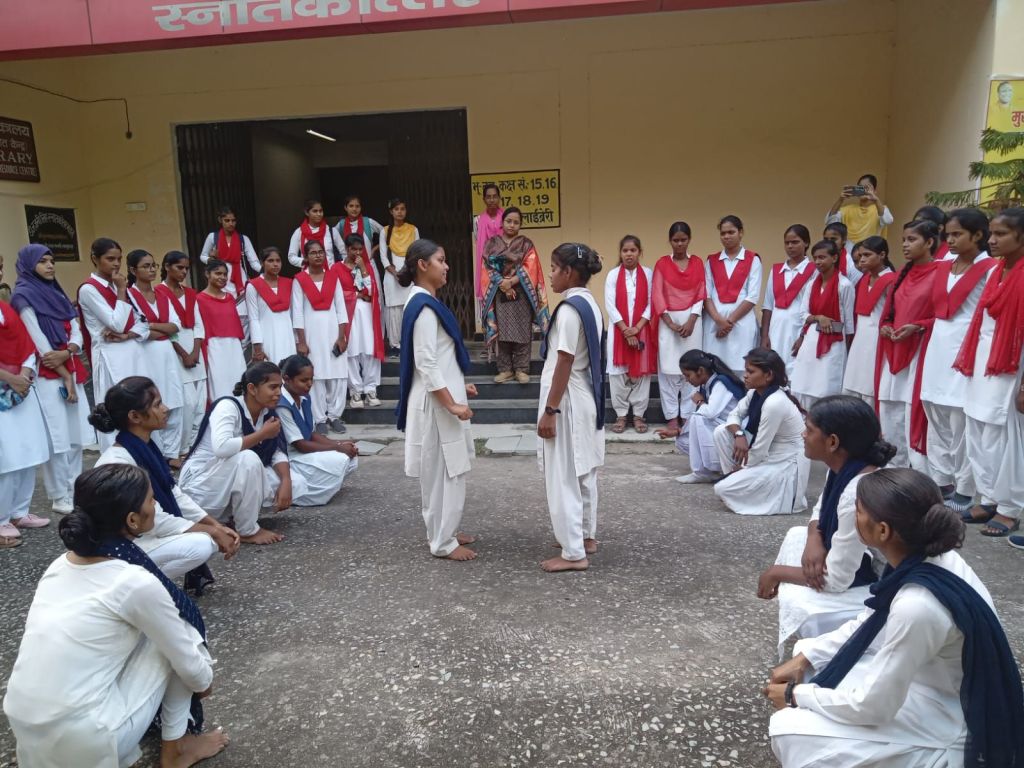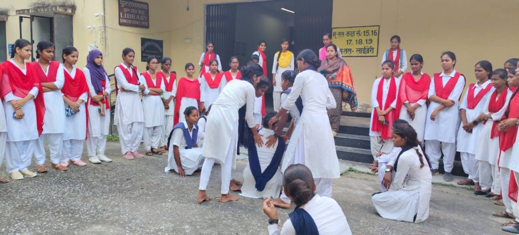 बी ए द्वितीय वर्ष की छात्राओं द्वारा “आयरन से भरपूर भोजन एनीमिया से दूर ” विषय पर नुक्कड़ नाटक करके महाविद्यालय की छात्राओं को जागरूक किया गया।
